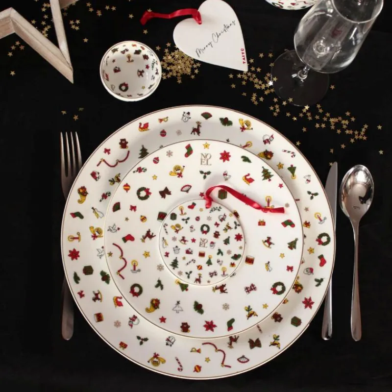 Die Kollektion Taitù Noel Oro ist feines Porzellan, das liebevoll mit weihnachtlichen Motiven dekoriert ist. Von Firmengründer Emilio Bergamin 1986 erdacht, hat das Porzellangeschirr für die Advents- und Weihnachtszeit auch nach all den Jahren nichts von seiner Faszination eingebüßt. 2019 erhielt die Kollektion Taitù Noel ein dezentes Facelift. Die Kollektion wird seitdem nicht mehr in der eierschalenfarbenen Ausführung geliefert, sondern ist nur noch in klassisch-weißem Fine Bone China erhältlich. Schon die ursprüngliche Kollektion bestach durch einen 24-karätigen Goldrand. Im Zuge der Modernisierung wurde das Geschirr auch um den goldenen Schriftzug Oro erweitert, seitdem trägt die Serie dementsprechend den Namen Taitù Noel Oro.