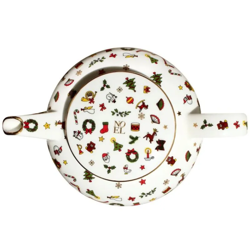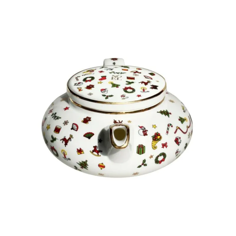 Dem verspielten Dekor der Serie Noel Oro mit tanzenden Schneeflocken, Sternen, Schneemännern und vielem weiteren liebevoll illustrierten Weihnachtsfiguren wird mit einem Faden aus reinem Gold am Rand ein Hauch von Luxus verliehen. Die modernen Formen der einzelnen Geschirrteile sorgen dafür, dass auf einer reich gedeckten Festtagstafel keine Wünsche mehr offen bleiben. Für alle, die die zauberhafte Magie von Weihnachten lieben, bietet Noel Oro ein goldenes Fest. In der runden Teekanne mit einem Fassungsvermögen von 500 ml können sich die Aromen und Farbstoffe des Tees ideal verteilen, ohne sich allzu sehr am Boden abzulagern. Die formschöne Tülle garantiert, dass schon in der ersten Tasse Tee alle leckeren Aromastoffe ankommen. 500 ml entsprechen dabei etwa zwei Tassen Tee. Aufgrund der Verzierung mit 24-karätige Gold ist die Serie Noel Oro weder für die Spülmaschine noch für die Mikrowelle geeignet.