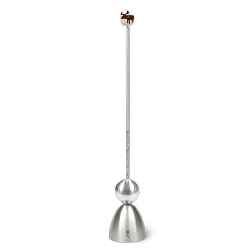 Der Eierschalensollbruchstellenverursacher Clack ist das perfekte Utensil für alle Liebhaber des Frühstückseis. Dieser praktische Helfer mit dem klangvollen Namen öffnet jedes Ei sauber und ordentlich, egal ob weich, mittel oder hart gekocht. Der Eieröffner Clack wird zunächst auf das Ei gesetzt, dann wird die Schlagkugel am Führungsstab nach oben geschoben und frei fallengelassen. Dadurch erhält die Eierschale eine ringförmige Bruchstelle. Nun lässt sich der Kopf des Eis ganz leicht mit einem Messer abheben. Die Öffnung des gekochten Eis mit dem Clack funktioniert mit einem kräftigen Stoß, daher sollte der Eieröffner nicht mit Eierbechern aus Porzellan genutzt werden. Der Eierschalensollbruchstellenverursacher Clack ist 24 cm hoch und hat einen Durchmesser von 4 cm. Er besteht aus Edelstahl, das Ei am oberen Ende ist aus Keramik gefertigt.