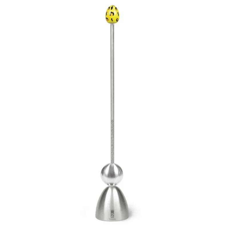 Der Eierschalensollbruchstellenverursacher Clack ist das perfekte Utensil für alle Liebhaber des Frühstückseis. Dieser praktische Helfer mit dem klangvollen Namen öffnet jedes Ei sauber und ordentlich, egal ob weich, mittel oder hart gekocht. Der Eieröffner Clack wird zunächst auf das Ei gesetzt, dann wird die Schlagkugel am Führungsstab nach oben geschoben und frei fallengelassen. Dadurch erhält die Eierschale eine ringförmige Bruchstelle. Nun lässt sich der Kopf des Eis ganz leicht mit einem Messer abheben. Die Öffnung des gekochten Eis mit dem Clack funktioniert mit einem kräftigen Stoß, daher sollte der Eieröffner nicht mit Eierbechern aus Porzellan genutzt werden. Der Eierschalensollbruchstellenverursacher Clack ist 24 cm hoch und hat einen Durchmesser von 4 cm. Er besteht aus Edelstahl, das Ei am oberen Ende ist aus Keramik gefertigt.