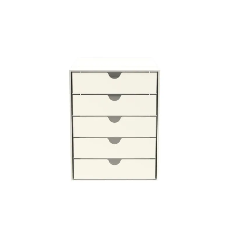 Mit dem Kastenset C4 aus der Serie Inos von USM lässt sich das Innenleben eines USM-Möbels auf funktionale Weise individualisieren. Der weiße Kasten mit fünf Schubladen lässt sich auf ein Möbel oder auf dem Boden platzieren oder auch präzise in ein bereits vorhandenes Regal einpassen. In dem schlichten Kasten aus hochwertigem Stahl und Polyestergewebe lassen sich alle möglichen Kleinteile praktisch organisieren und verstauen. So wird USM dem Anspruch gerecht, besonders individualisierbare Produkte zu entwickeln, die sich den eigenen Bedürfnissen anpassen. Zusätzlich sind diverse Zusatz-Accessoires erhältlich, mit denen der Kasten bestückt werden kann. Das Kastenset C4 mit 5 Schubladen ist 31,6 cm hoch und 24,1 cm breit.