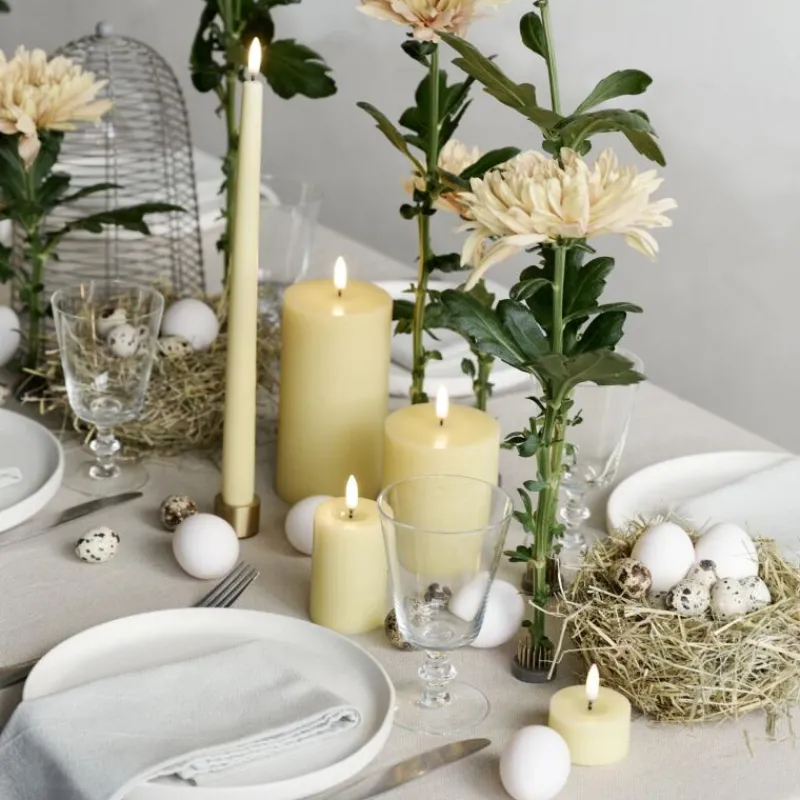 Echtwachs-LED-Stumpenkerze mit Wachsspiegel Wheat Yellow Smooth 4,5 cm von Uyuni