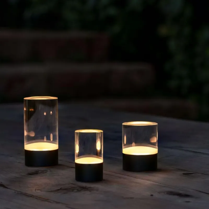 Die elegante Lampe Glow Rod von Uyuni überzeugt mit elegantem Minimalismus, klaren Linien und skandinavischer Raffinesse. Sie besteht aus einem Acrylkörper und einem schwarzen Aluminiumsockel und verbreitet ein angenehm warmes Licht (2800 – 3200 Kelvin), wahlweise im Dauerbetrieb oder im für Uyuni typischen, lebensechten Flackern. Die LED-Lampe ist praktischerweise wiederaufladbar und kommt so ganz ohne Batteriewechsel aus. Ob auf dem Nachttisch, beim Abendessen auf der Terrasse oder im Bücherregal, Glow Rod ist extrem vielseitig einsetzbar und verschönert jeden Raum. Zudem ist Glow Rod mit einem Timer ausgestattet und mit allen Fernbedienungen von Uyuni kompatibel. Eine Ladezeit von 3,5 Stunden sorgt für etwa 60 Stunden Laufzeit von Glow Rod. In der kleinen Größe ist Glow Rod 8 cm hoch und hat einen Durchmesser von 4,5 cm. Die passende Ladestation ist nicht im Lieferumfang enthalten und muss separat erworben werden.