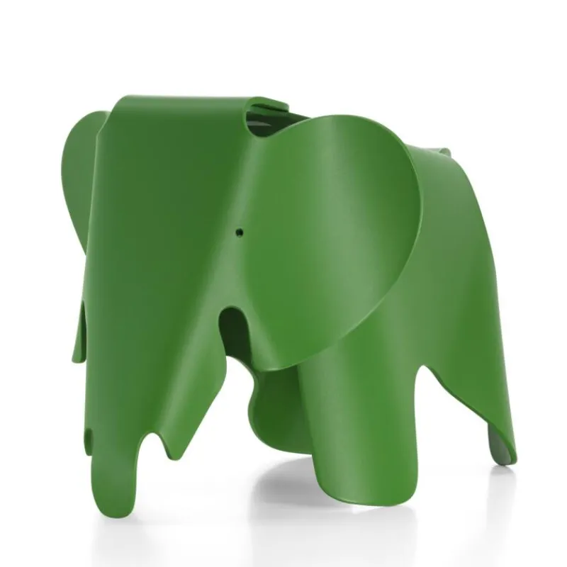 Den Plastic Elephant, den Charles und Ray Eames 1945 zunächst aus Schichtholz entworfen hatten, gibt aus aus durchgefärbtem Polypropylen in unterschiedlichen Farben – wie hier in kräftigem Grün. Ob als elegantes Objekt aus Holz im Wohnzimmer, als robustes Kunststoffspielzeug fürs Kinderzimmer und für draussen oder als dekorative, kleine Tierfigur – das freundliche Tier mit seinen markanten, grossen Ohren lässt so manches Kinder- und Elternherz höherschlagen. Der Plastic Elephant in der Farbe Palm Green ist 78,5 cm lang und 41,7 cm hoch.