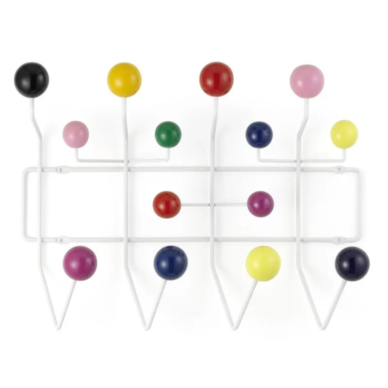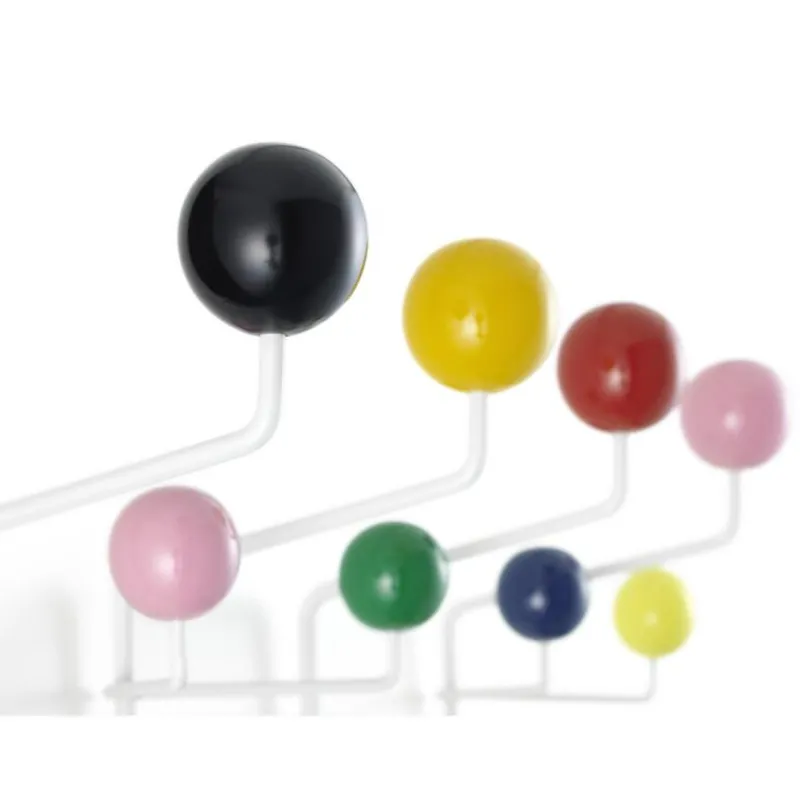 Hang It All ist eine bunte Garderobe für Groß und Klein. Die allererste Farbvariante mit den verschiedenfarbigen Kugeln in gelb, rosa, violett, rot, grün, blau und schwarz wurde von Ray Eames entworfen – ein echter Klassiker. Die glänzend lackierten Holzkugeln sind ein sonnig-verspielter Blickfang und bringen Frische und Stil an jeden Garderobenplatz.