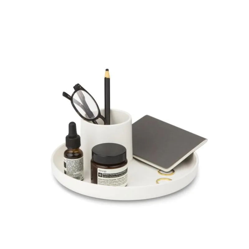 Michel Charlot entwickelt Produkte mit hohem Effizienzfaktor. Das Office-Accessoire O-Tidy ist Schale und Becher zugleich, eine Ablage, die viele kleinere Gegenstände unterschiedlichster Form aufnehmen kann. In weißer Farbe wirkt das Ordnungs-Tool edel, komfortabel und verspielt – ein heller Blickfang, der Leichtigkeit und Dynamik versprüht und damit in einer Umgebung, in der gearbeitet wird, ideal platziert ist.