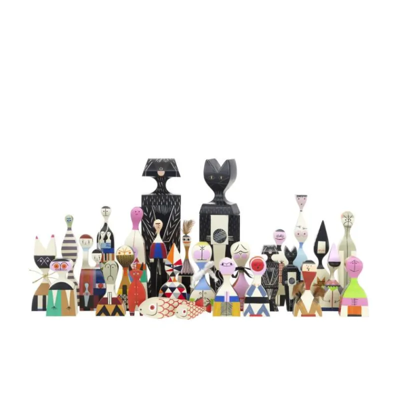 Die Wooden Dolls des US-Designers Alexander Girard sind Dekorationselemente und Spielzeug zugleich. Ursprünglich für sein eigenes Haus in Santa Fe entworfen, werden die kleinen Holzfiguren heute nach ihren Originalvorlagen produziert. Das Design Girards wurde maßgeblich von der Volkskunst Asiens, Osteuropas und Südamerikas beeinflusst. Das sieht man den sehr individuell gestalteten und in Handarbeit gefertigten Figuren auch deutlich an: Die außergewöhnlichen Gestalten der Wooden-Doll-Serie präsentieren sich bunt und ausdrucksvoll, erfüllen den Wohnraum mit Spannung und Energie.