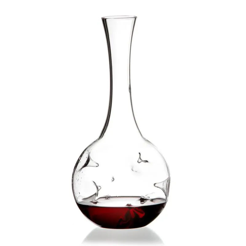 Der einzigartig innovative Dekanter Eddy besteht aus hochwertigem,gehärtetem Glas. Normalerweise wird in der Dekanterproduktion Kristallglas eingesetzt, doch gehärtetes Glas ist frei von Blasen, dabei extrem hart und transparent. Mit diesem Material konnte ein Dekanter mit außergewöhnlichen nach innen gerichteten Verwirbelungskörpern entwickelt werden. Diese ermöglichen eine rasante Beatmung und damit eine ungewöhnliche Strukturentwicklung des jeweiligen Weins. Gleichzeitig entstehen in dem bis zu 800 Millilitern fassenden und 25 cm hohen Dekanter Eddy faszinierende Farbspiele. Der Dekanter hat einen Durchmesser von 12 cm. Mit dem kleinen Dekanter lassen sich besonders offene Weine und Weine aus kleinen Flaschen hervorragend dekantieren. Die optimale Füllmenge für maximalen Sauerstoffgehalt liegt dabei bei 375 ml. Mit diesem Dekanter hat Zieher eine neue Klasse der Weinpräsentation geschaffen.